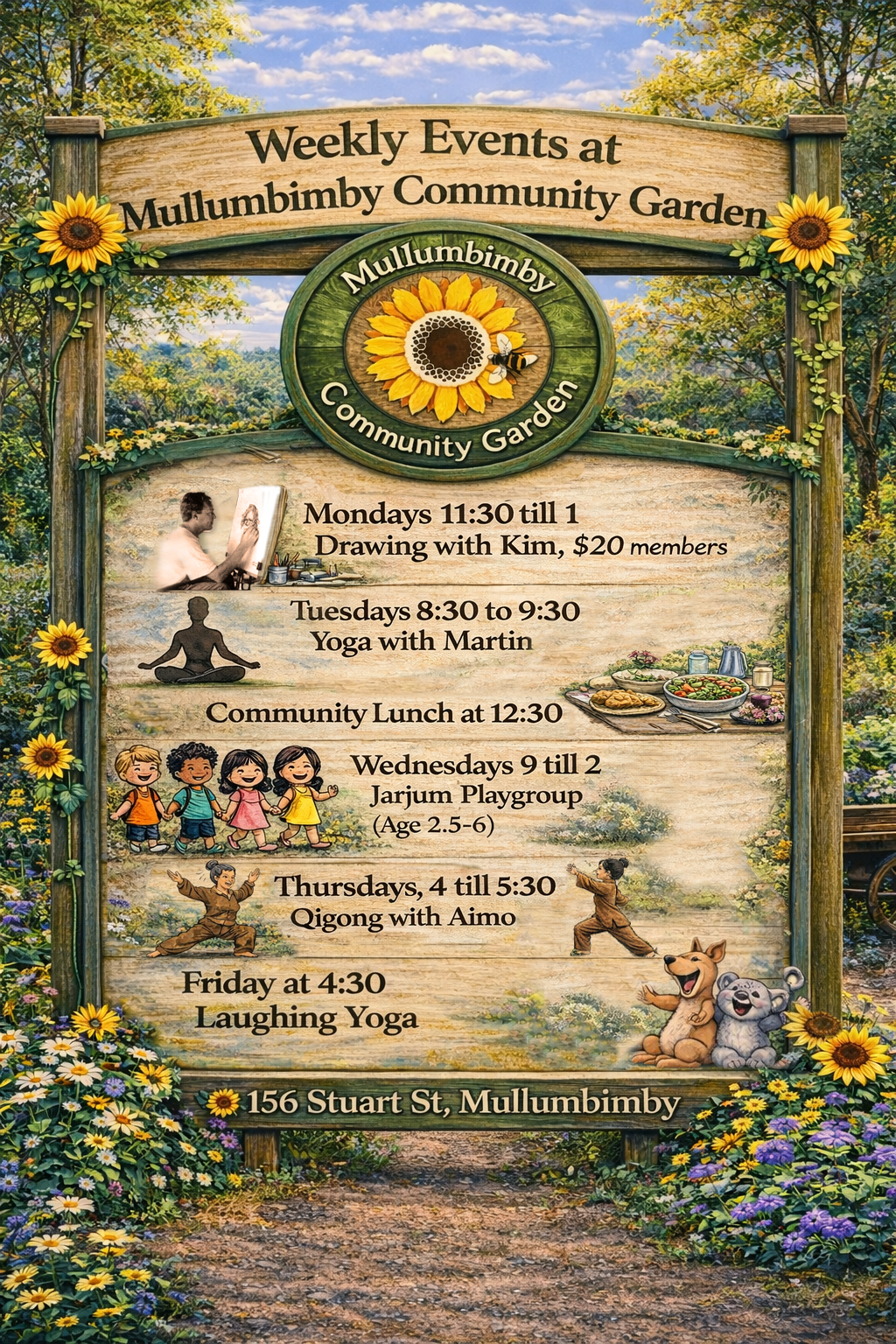 Call Us : 0499 569 333 . - Visit us : 156 Stuart Street Mullumbimby. - Email : mullumcommunitygarden@gmail.com